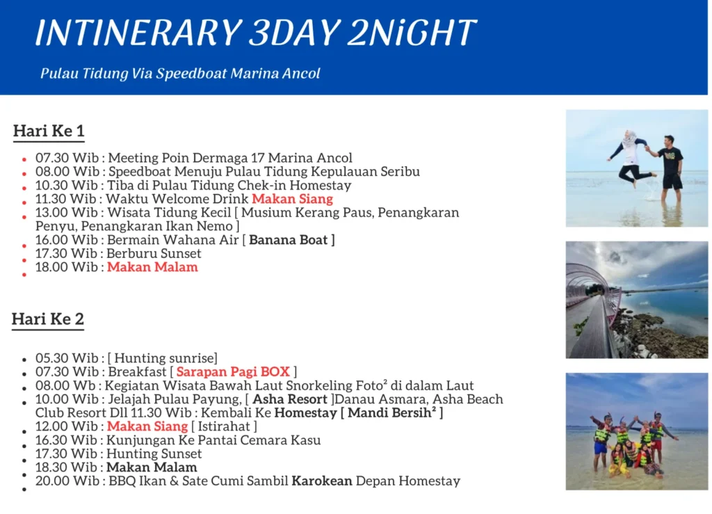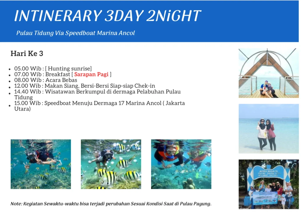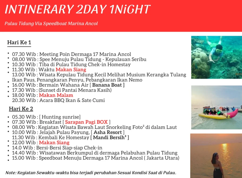 Note : Kegiatan Sewaktu-waktu bisa terjadi perubahan Sesuai Kondisi Saat di Pulau Tidung &' Pulau Payung